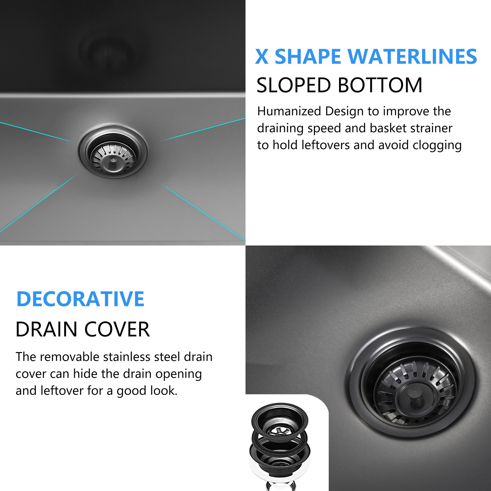Home > 27" x 22" Drop In Kitchen Sink Gunmetal Black, 16 Gauge Stainless Steel Workstation Sink