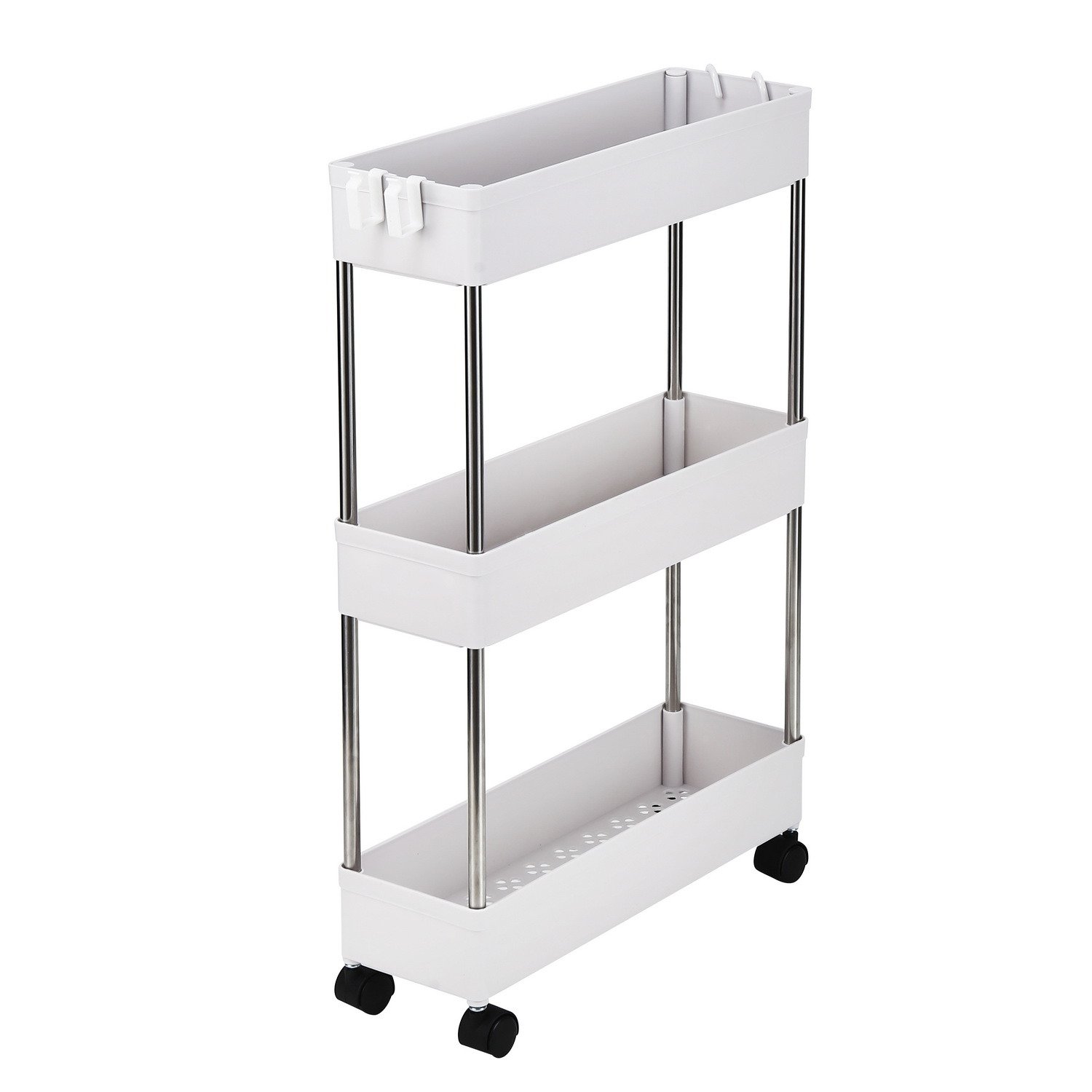 Home > 3 Tier Slim Storage Cart Mobile Shelving Unit Organizer Slide Out Storage Rolling Utility Cart Tower Rack for Kitchen Bathroom Laundry Narrow Places,