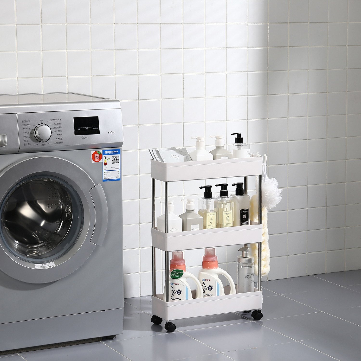 1.The 3-storey ultra-thin structure design of shopping cart can be placed in any small space in your home, including closet, kitchen, bathroom, garage, laundry room, office or between washing machine and dryer