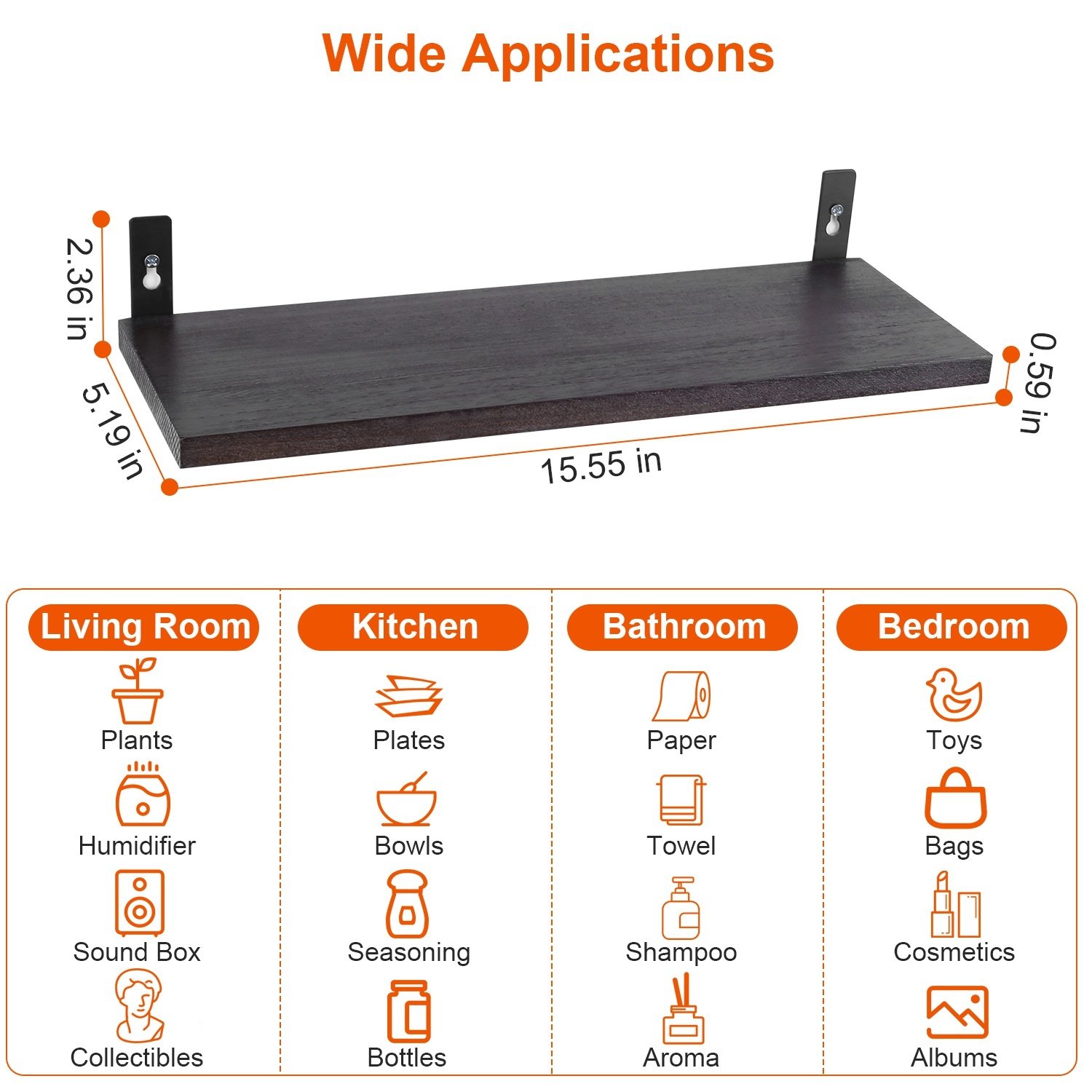 Home > 6 Sets Floating Shelves 15.55x5.19Inch Wall Mounted Shelves Wood Storage Shelves Metal Bracket Hanging Display Shelf Wall Organizer for Living Room Ba