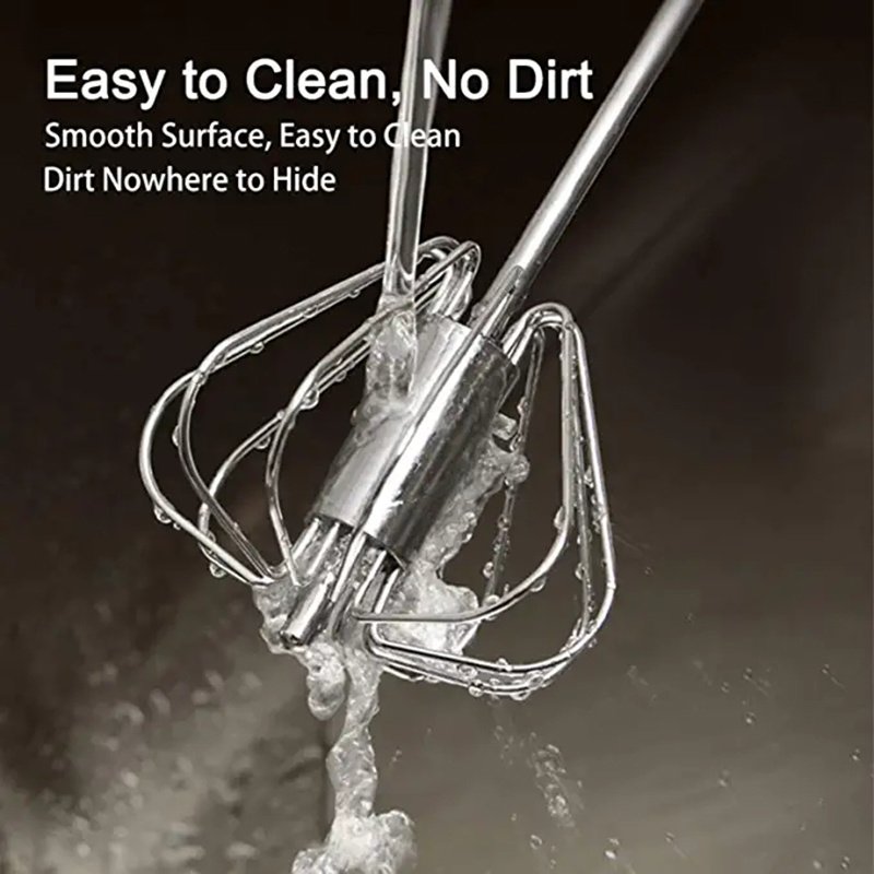 2.Semi Automatic Design - Simply press down the handle and the whisk stainless steel blades rotate, no more wrist spinning. Ergonomic design, save time and effort.