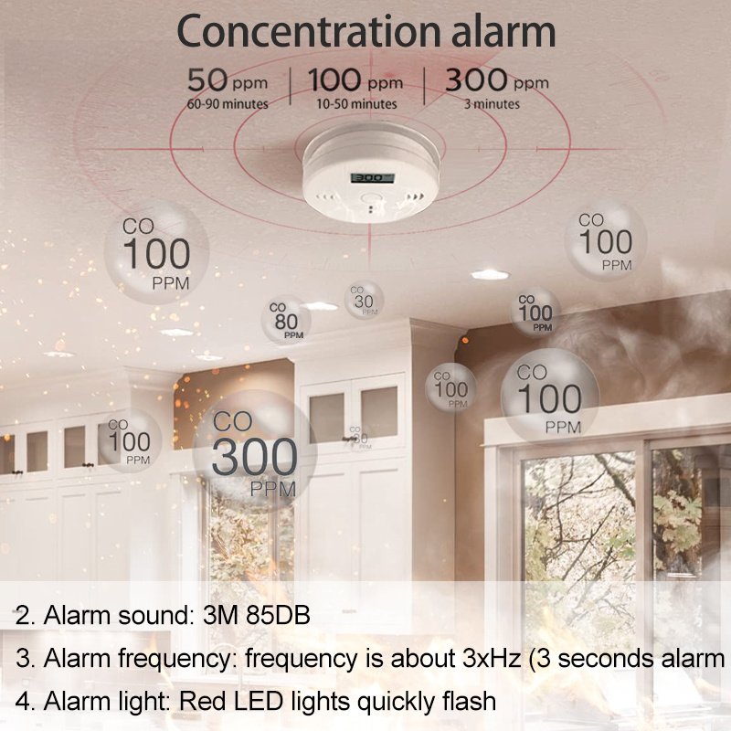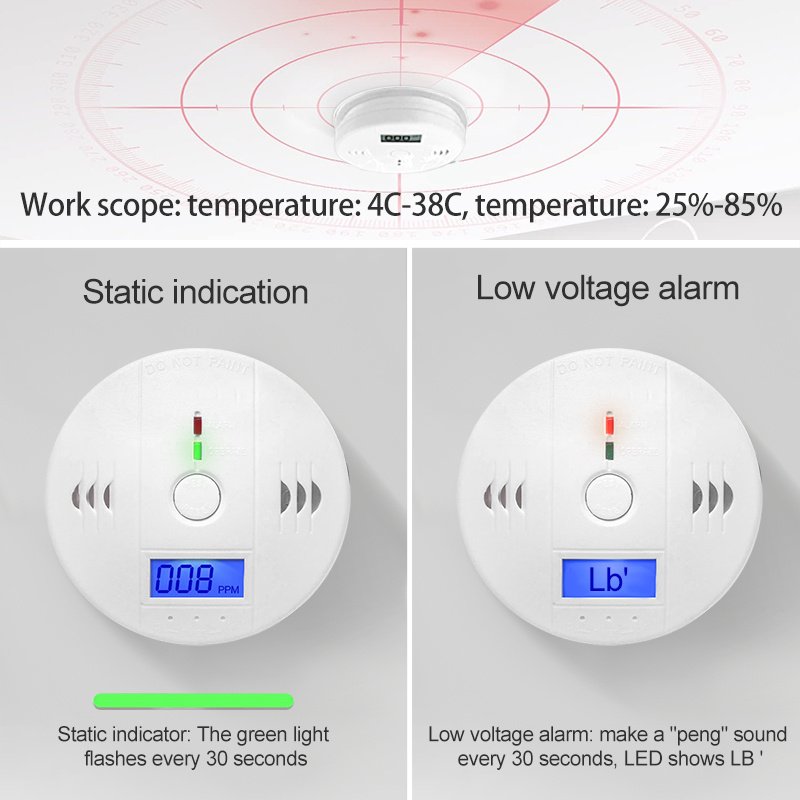 3. Household carbon monoxide alarm is used for gas and CO leakage detection and can be installed in kitchen; bathroom and other places. During the heating period in winter; the doors and windows are usually closed; and the gas (carbon monoxide gas) in the air is inconvenient to circulate; which increases the unsafe factors. The use of household carbon monoxide alarm (gas alarm) can effectively prevent the occurrence of danger