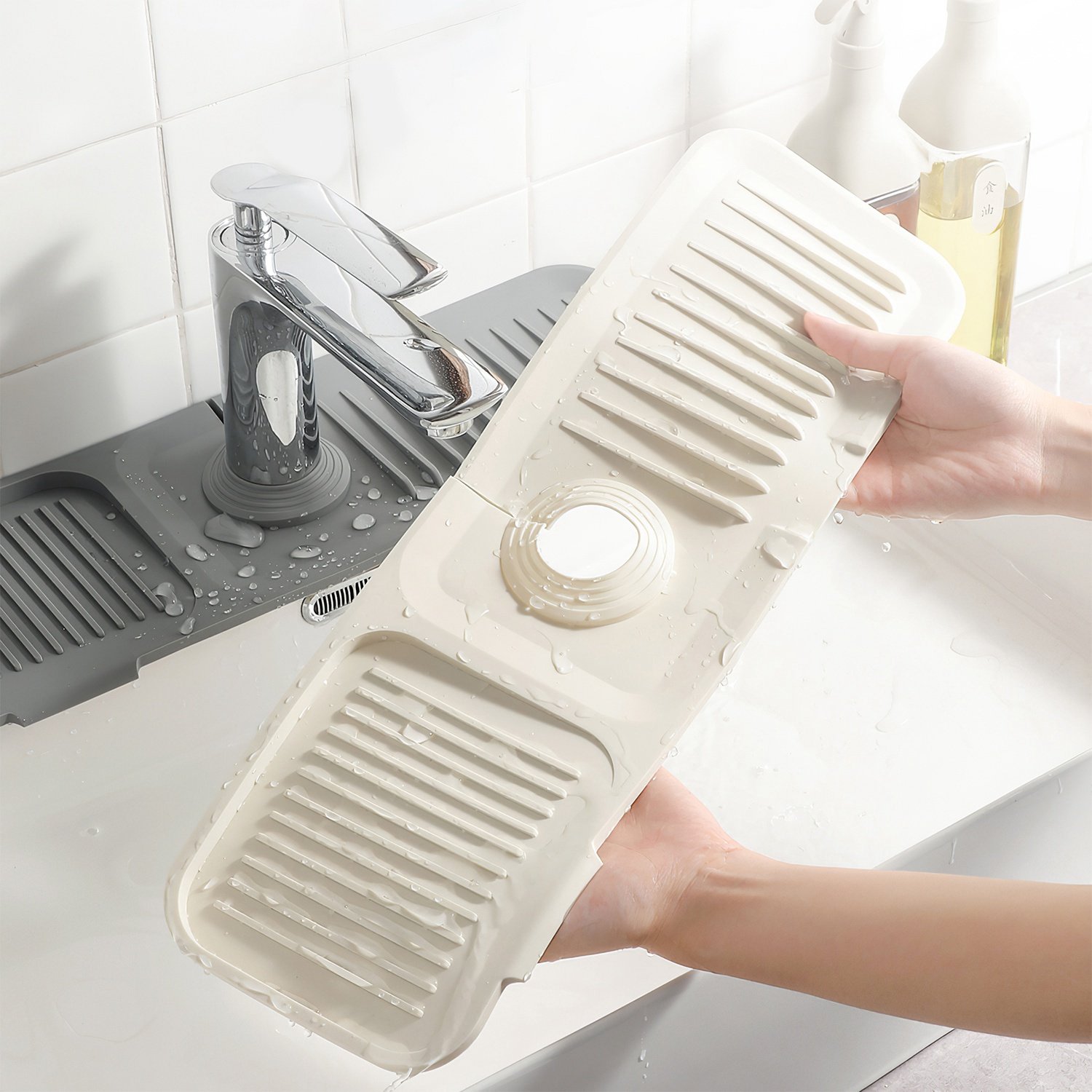 Home > Faucet Splash Mat 14.56x5.51in Silicone Sink Drying Mat Water Drip Catching Tray Water Drainage Pad Sponge Soap Holder for Kitchen Bathroom Sink Fauce