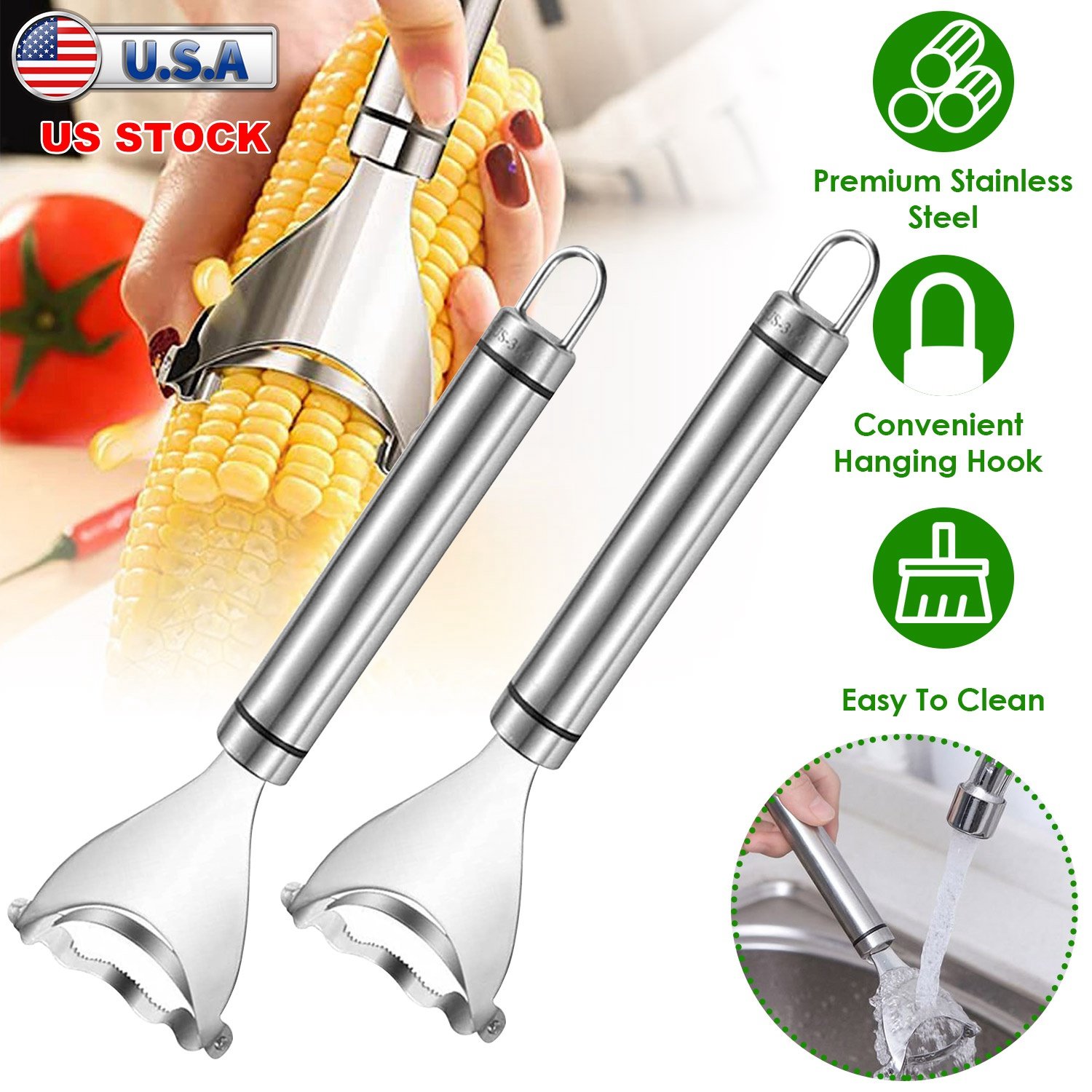 2Pcs Stainless Steel Corn Cob Peelers One-Step Cob Kerneler Remover Kitchen Corn Stripper Cutter Slicer Thresher Tool