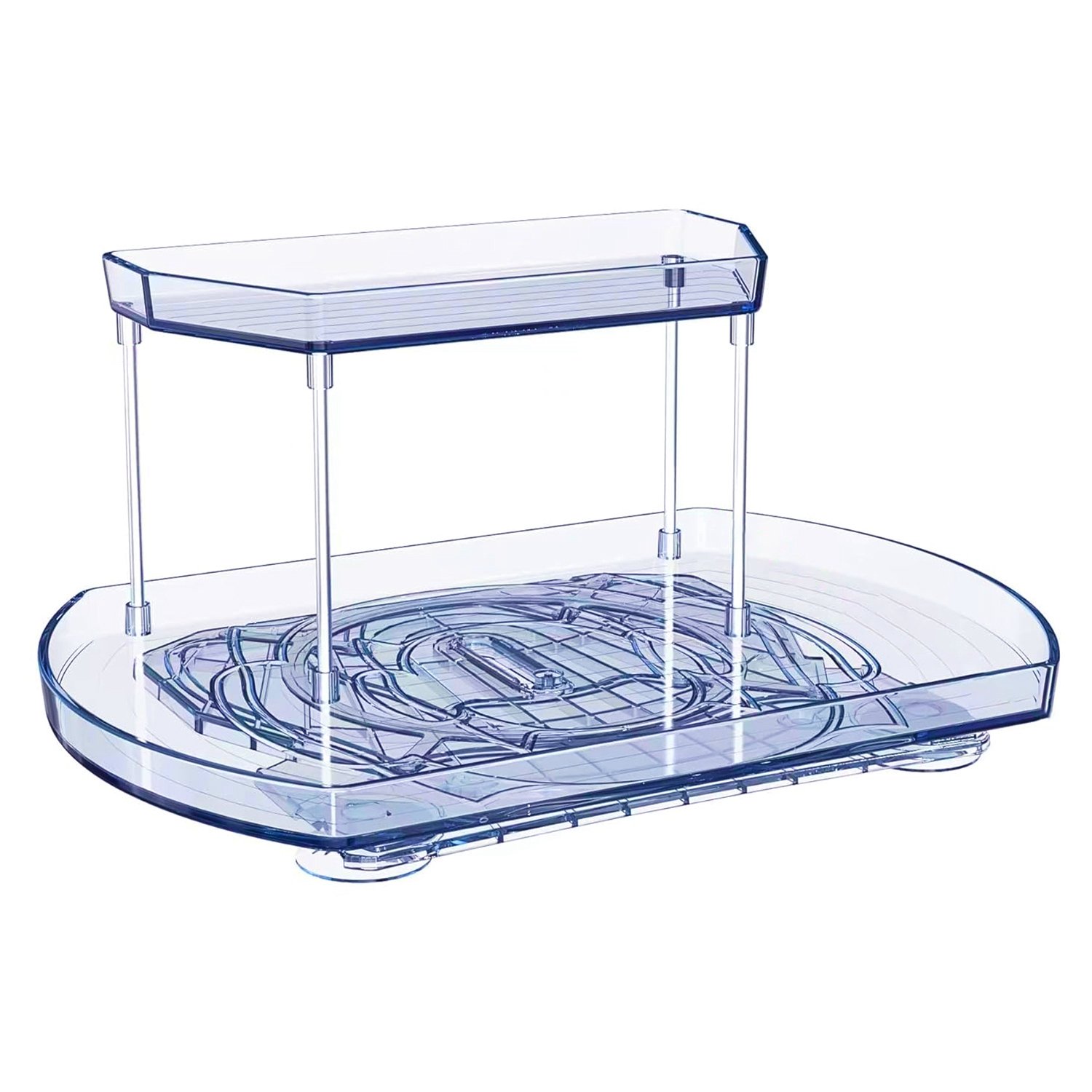 2 Tier Turntable Organizer Rectangular Refrigerator Spinner Storage Rack with 360° Rotatable Slide Rail for Kitchen Cabinet Countertop
