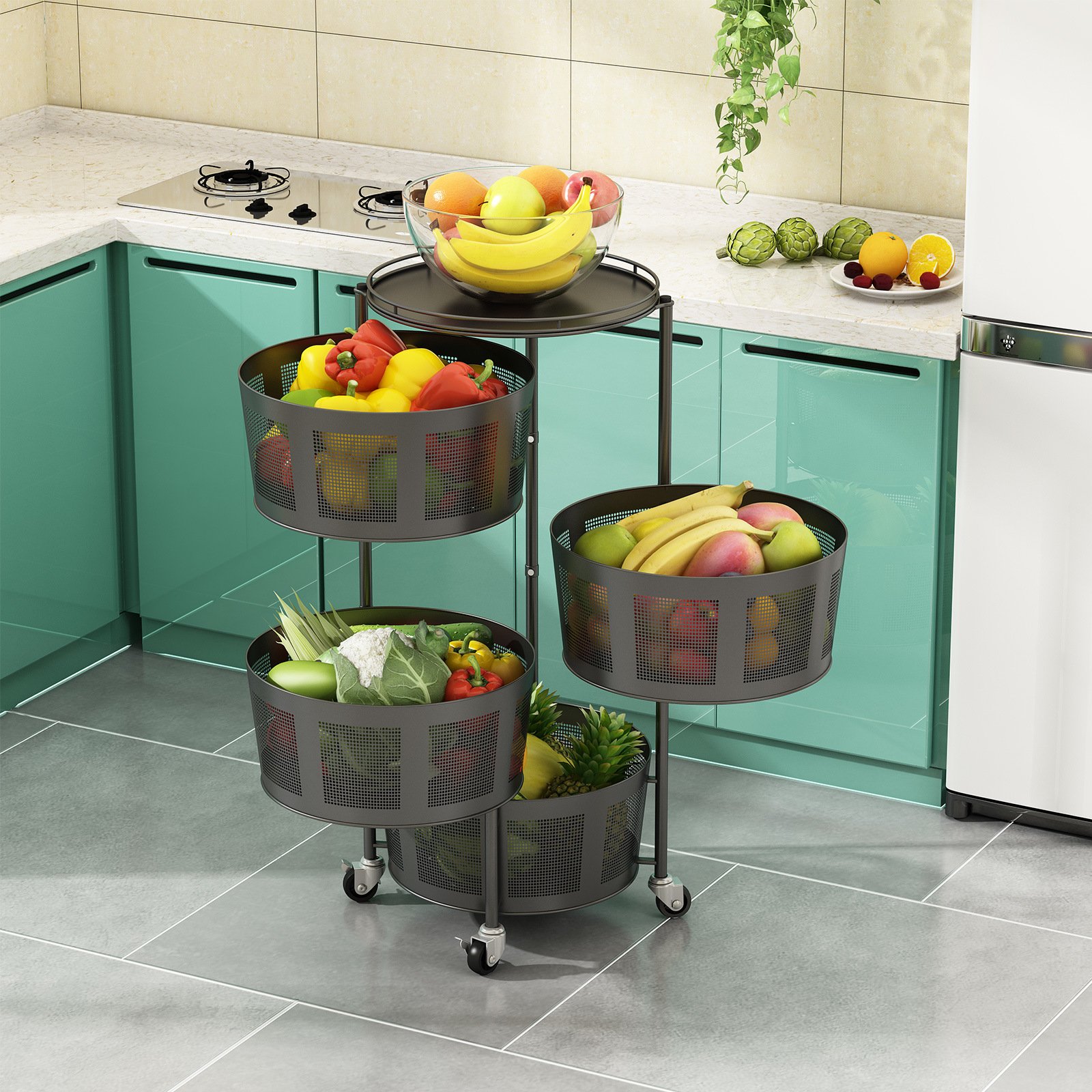 3. Encrypted wire mesh breathable basket keep fruits and vegetables fresh; hollow out breathable tops; make fruits and vegetables not easy to rot.